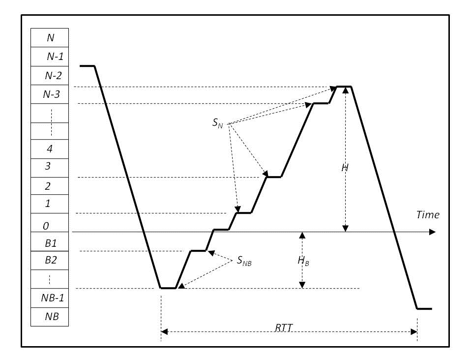 In order to derive a general formula for calculating the elevator round trip time it is necessary to study the movement of the elevator car around the building in a single trip during up peak traffic conditions. The round trip time comprises the following components: