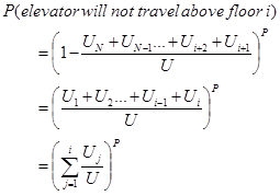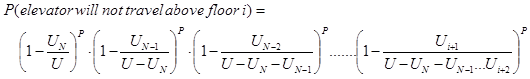 where N is the number of floors above the ground floor. Thus the probability that passenger j will not stop at a floor i is: