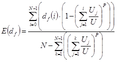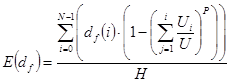The effective floor height df eff is the expected value of the floor height. The effective floor height is the weighted average of the product of each floor height multiplied by the probability of the elevator passing through that floor. In order for the elevator to pass through a floor it should travel to any of the floors above that floor. Thus it is necessary to find the probability of the elevator travelling above a certain floor, i.