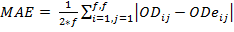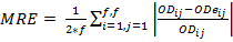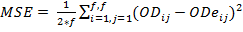 The forecasting process must be evaluated in order to select the appropriate method. For this task, some indicators are needed to measure the quality of the method. In time series theory, three measures of the error are commonly used; MSE (mean square error), MRE (mean relative error) and MAE (mean absolute error). All of them calculate a discrepancy between the real data and the forecasted data. The equations 1, 2 and 3 show how these discrepancies are calculated. In all the equations, predictions are converted to OD matrixes, where ODij, represents the real OD matrix data for the origin-destination pairs, represented by (i,j). In the same way, ODeij is the estimated data matrix and f represents the number of floors.
