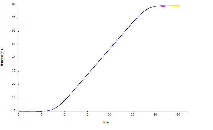 Finally, integrating the velocity provides the distance travelled, see Figure 5.