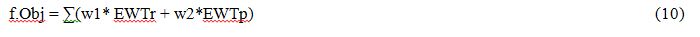 But the final decision of the best route is taken with the objective function. This function can be seen in the Eq. 10.