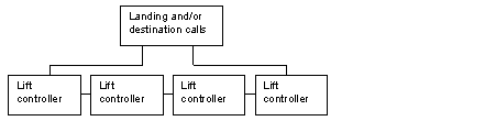 A common approach is distributed control, see Figure 1. Each lift controller receives all information about new landing (or destination) calls over a network. Each lift controller performs its own calculations, providing a bid for the call according to the traffic control algorithm. The master lift control compares the bids and awards the call.