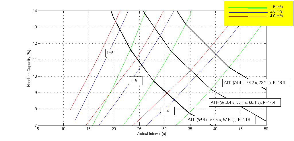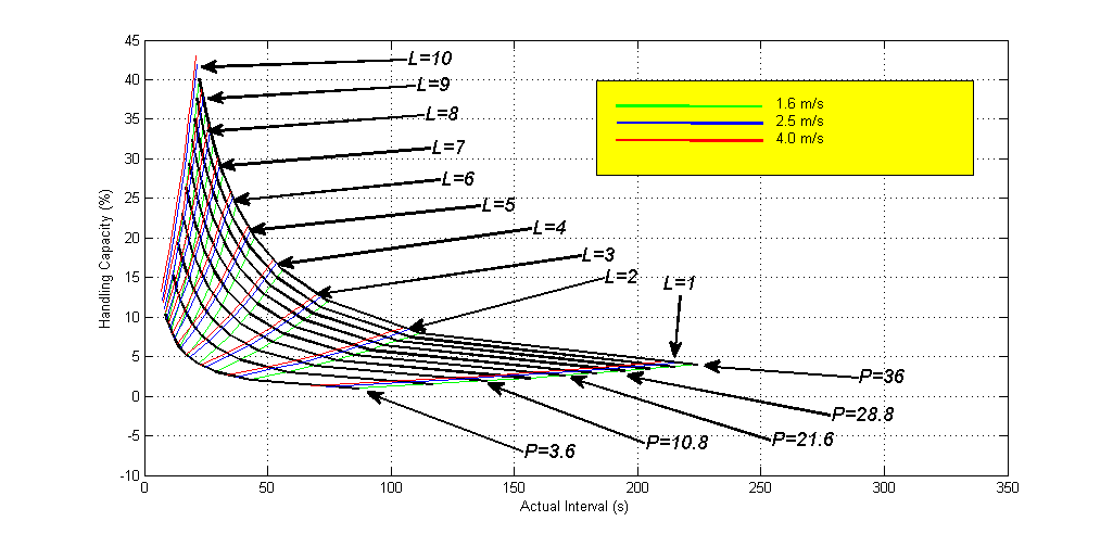 - A factor of bunching of 1 has been plotted for a group of one lift.