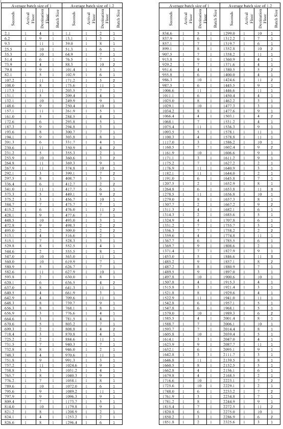 Likewise, the distribution of destinations will tend to 10% (0.1) for each floor as the number of runs increases. Table 6 shows the distribution of destinations generated for the run with batch size 1.
