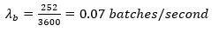 The average batch size is 1.2 persons, and there are 300 persons. On average, there are 300 persons/ 1.2 persons per batch = 250 batches. In this example, the software generated 252 batches. These arrive in one hour (3600 seconds). So, the batch arrival rate λ_b is
