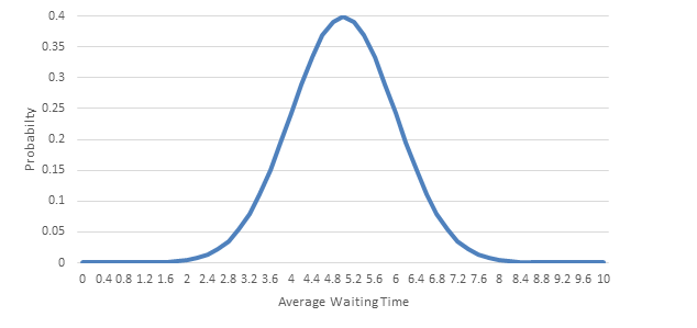 The probability distribution of AWTs determined by simulation varies for each lift configuration and set of simulation parameters (length of simulation, number of people, number of floors, number of lifts, etc.). These distributions are Lognormal (see Figure 5) rather than Normal (see Figure 6) as the AWT can never be less than or equal to 0s, whereas right tail can theoretically be infinitely long. A Lognormal distribution is “a continuous probability distribution of a random variable whose logarithm is normally distributed” [7].