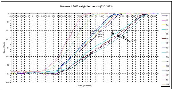As mentioned in earlier, four weight tests were carried out on four escalator types. A weight tests involves loading the escalator steps with steel weights, running the escalator in the down direction, stopping it and measuring the stopping distance and the maximum deceleration.