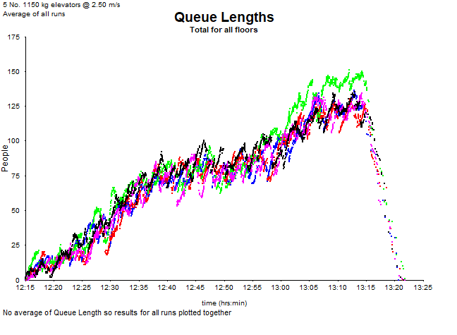 A traffic analysis using Up Peak and Lunch templates from Peters Research was conducted. Figure 1 is a plot of the queue lengths during Up Peak.