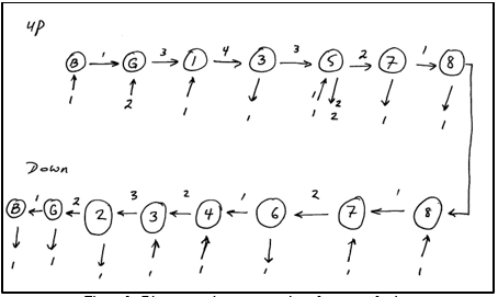 As can be seen in the table, there are 4 inter-floor passengers, 2 outgoing passengers and 3 incoming passengers. The full journey is now analysed in terms of stops and passengers in the car throughout the round-trip as shown in Table 2.