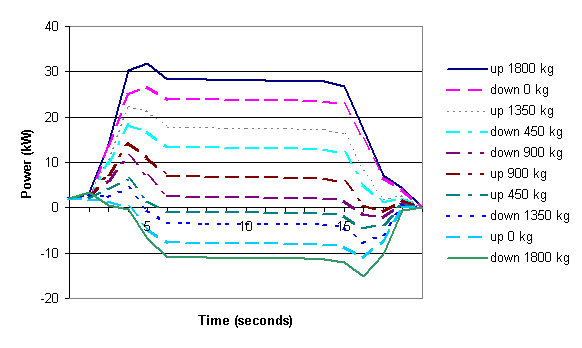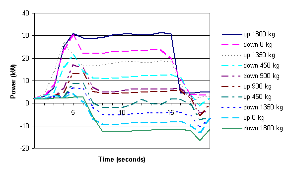 Figure 2 Speed and energy consumption of an elevator carrying different loads
