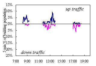 If the results of traffic surveys are to be applied in the design of other buildings, it is important that traffic is recorded relative to the actual building population - plotting survey results of a partly occupied building relative to nominal building population can suggest misleadingly low traffic flows.
