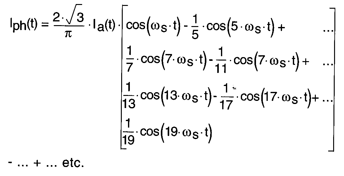 By Fourier analysis, ignoring overlap, the quasi square-wave phase current of an ideal six-pulse converter (7) can be shown to be
