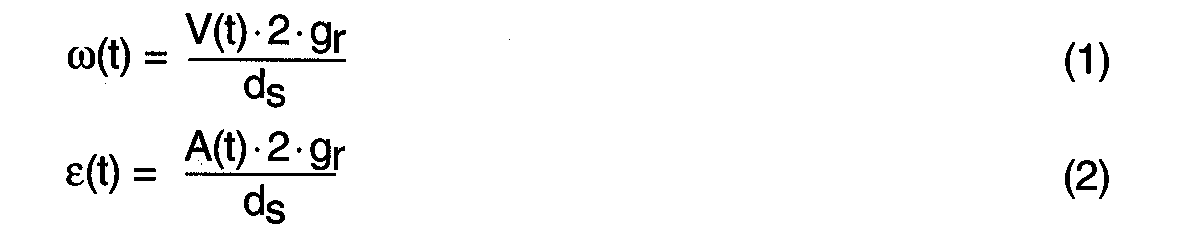 If the drive sheath diameter, ds - .5 and the gear ration, gr –20, then the angular velocity and acceleration are