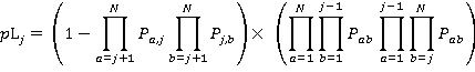 1 - (probability of no calls from lower floors to the jth floor) * (probability of no calls from the jth floor to higher floors)