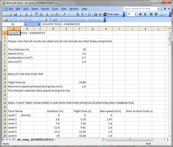- Flight times and door to door times from the Home floor to all other floors entered in Building Data using the specified speed/acceleration/jerk combination.