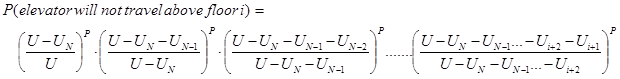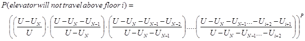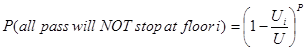 where N is the number of floors above the ground floor. Thus the probability that passenger j will not stop at a floor i is:
