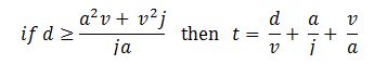 The flight time between floors at any rated speed, acceleration, jerk and travel distance, can be calculated using the formulae in [7], reproduced below: