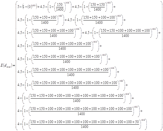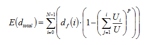 The effective floor height df eff is the expected value of the floor height. The effective floor height is the weighted average of the product of each floor height multiplied by the probability of the elevator passing through that floor. In order for the elevator to pass through a floor it should travel to any of the floors above that floor. Thus it is necessary to find the probability of the elevator travelling above a certain floor, i.
