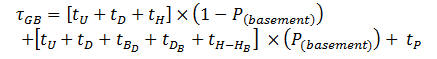 The case of multiple entrances has been dealt with by calculating the probability of going to the basement and calculating the extra time incurred when the elevator car goes to the basement [3]. The amended formula is shown below, where it is made up of two parts: the original round trip time element for floors above the main entrance and the extra time required to go to the basement multiplied by the probability of going to the basement.