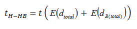 The expected running time in the down direction tHB in the basement floor can be found by using the expected value of the total basement heights E(dB(total)) using a modified version of equation (44) for the basements and applying the results from the kinematic equations (4), (5) and (6) as follows: