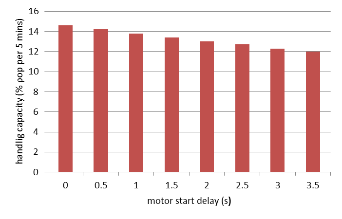 Figure 13 Sensitivity analysis showing impact of motor start delay on handling capacity