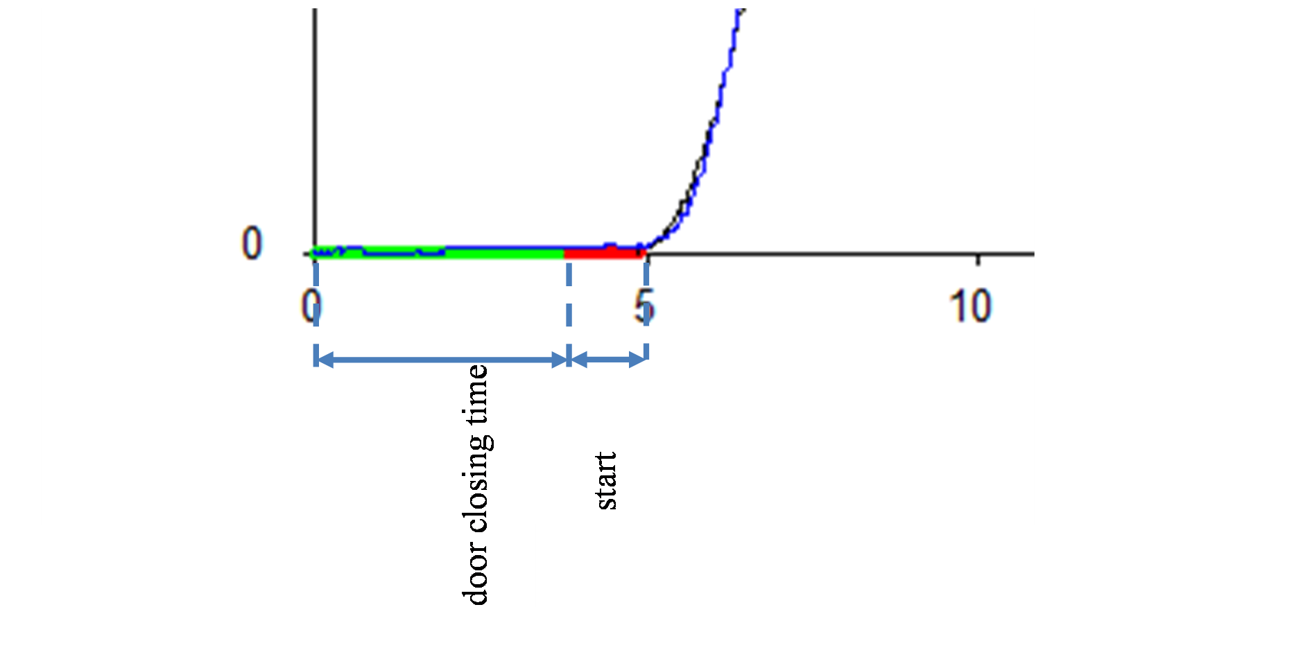 Figure 6 Close up of start of velocity plot showing door closing time and start delay