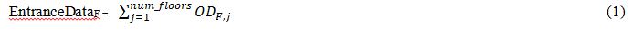 - Extract the origin destination matrices for each log file; they will record the movements from origin to destination for every day aggregated for the considered time interval. The time interval used will be 2.5 minutes. The data obtained counting passenger trips from log data is very close to the real data and we can say that in an ideal situation, the error in the counting process is less than ± 10%. In the Eq. 1, it can be seen how to obtain the Origin Destination (OD) matrix in order to obtain the value of each floor.