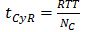 It is only possible to put an integer number of cars into the system. In case of an unchanged round trip time (RTT) and rounding down the number of cars/the result of equation (7), the real average cycle time (tCyR) will be higher than the minimum possible cycle time (see equation 8). To achieve the same handling capacity the round trip time (RTT) needs to be reduced, e.g. by increasing the speed of the cars. (8)