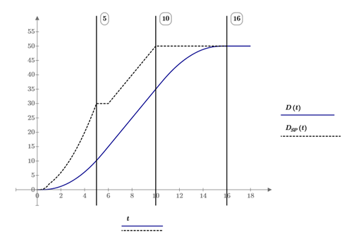 Figure 3: position (D(t)) and stopping point (DSP(t)) of a car