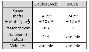 With increasing travel height the rated velocity is increased for both systems. The velocity of the MCLS is lower than the velocity of the double deck.