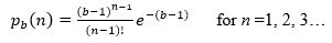 Where pb(n) is the probability of a batch size of n and b is the average batch size. Note: it is not suggested that the underlying distribution is Poisson, but that the curve follows a similar pattern. The classical Poisson formula is offset by 1 as there cannot be a batch size of 0.
