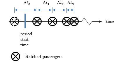 Call the number of batches generated Nb. Once the passenger batches have been generated, the arrival times of the batches can be determined.