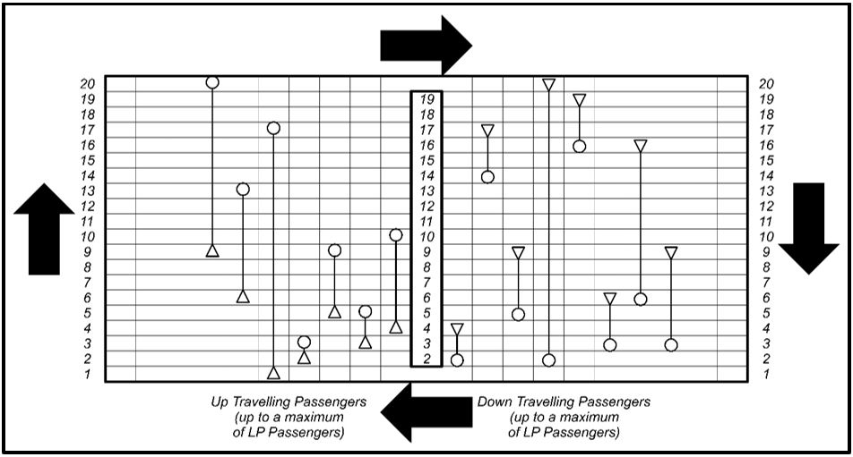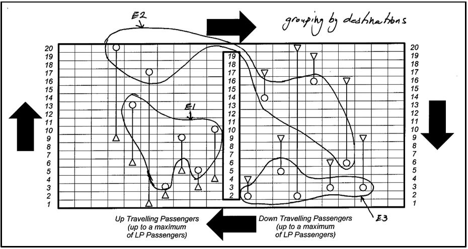 - The controller has full advance knowledge of the passenger origins and destinations and hence can allocate passengers to the lifts cars as necessary.