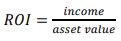 In the case of buildings, income represents the rents collected from tenants minus operating expenses and asset value is the value of the lifts and all other building components. If an investor places €1,000 in a bank account and the bank pays the investor €30 per year in interest, then the investment has an ROI of 3%. If an investor builds a building for €100,000,000 and receives an income of €3,000,000 after all expenses, then the building investor also has an ROI of 3%. Applying Equation 1 to the building example yields the following results: