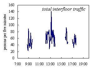 If the results of traffic surveys are to be applied in the design of other buildings, it is important that traffic is recorded relative to the actual building population - plotting survey results of a partly occupied building relative to nominal building population can suggest misleadingly low traffic flows.