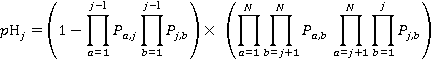 1 - (probability of no calls from lower floors to the jth floor) * (probability of no calls from the jth floor to higher floors)