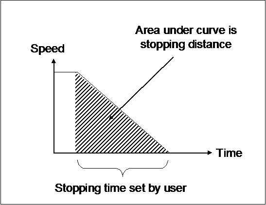 Figure 3 illustrates how this is set in the current system. The user defines the desired stopping time. This automatically sets a speed profile and thus a deceleration profile. The area under the curve is the stopping distance.