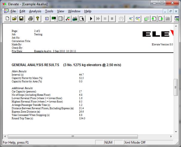 If the Analysis type is Enhanced up peak or General analysis the inputs specify how much traffic there is going to be and Elevate calculates Capacity Factor by Area and Capacity Factor by Mass. In an Up peak analysis the inputs specify how full the elevator will be, then Elevate calculates the 5 minute handling capacity. Thus only one of these two results is given according to the Analysis type selected.